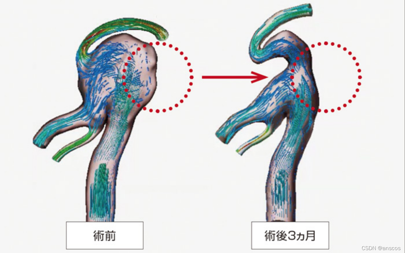 Nakamura等人正在研究由流量变化引起的设想进行验证。图1显示了基于医学图像(例如实际患者的CT和MRI)创建的模型,并通过SCFLOW&SCRYU/Tetra进行了分析。由于某些MRI可以获取血流的速度分布,因此可以创建与个人血液状况相结合的模型。