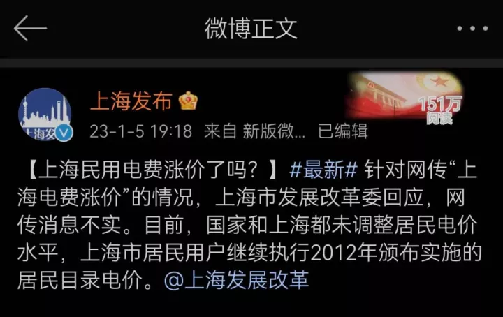 1月5日晚,针对网传“电费上涨”话题。上海发展改革委回应称,网传消息不实。目前,国家和上海均未调整居民电价水平。上海市居民用户继续执行2012年颁布实施的居民目录电价。