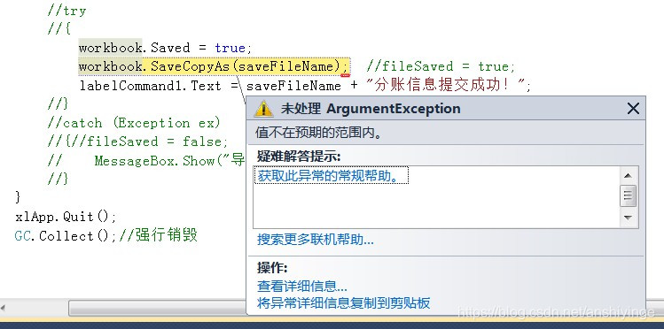 各位老师:我想在dataGridView导出的excel文件名上加一个日期的LocalTime,但是现在“saveFileName”提示值不在预期范围内,麻烦请问各位老师,我应该如何修改,感激不尽!