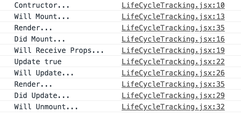 import React from 'react'; class LifeCycleTracking extends React.Component { constructor(props) { super(props); this.state = { content: 'This is lifecycle tracking content' } console.log("Contructor..."); } componentWillMount() { console.log("Will Mount..."); } componentDidMount() { console.log("Did Mount..."); } componentWillReceiveProps() { console.log("Will Receive Props..."); } shouldComponentUpdate() { console.log("Update true"); return true; } componentWillUpdate() { console.log("Will Update..."); } componentDidUpdate() { console.log("Did Update..."); } componentWillUnmount() { console.log("Will Unmount..."); } render() { console.log("Render..."); return ( <div> <h2>{this.props.title}</h2> <p>{this.state.content}</p> </div> ); } } export default LifeCycleTracking;