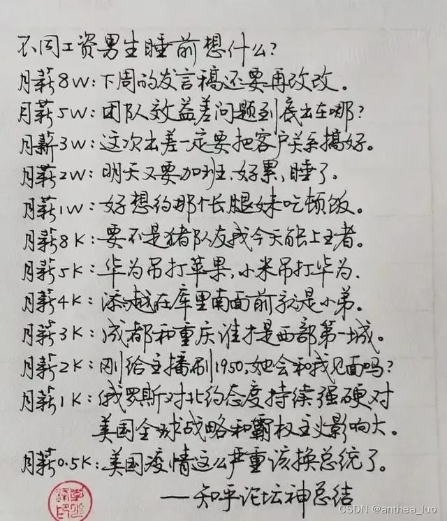 你像哪种? 如果你实际月薪2k,心里想的是月薪5w的事,将来你有机会成为月薪5w的人。
