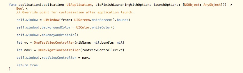 func application(application: UIApplication, didFinishLaunchingWithOptions launchOptions: [NSObject: AnyObject]?) -> Bool{}方法里