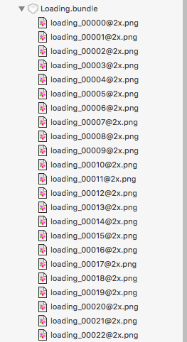 - (NSArray *)animationImages { NSFileManager *fielM = [NSFileManager defaultManager]; NSString *path = [[NSBundle mainBundle] pathForResource:@"Loading" ofType:@"bundle"]; NSArray *arrays = [fielM contentsOfDirectoryAtPath:path error:nil]; NSMutableArray *imagesArr = [NSMutableArray array]; for (NSString *name in arrays) { UIImage *image = [UIImage imageNamed:[(@"Loading.bundle") stringByAppendingPathComponent:name]]; if (image) { [imagesArr addObject:image]; } } return imagesArr; } - (void)viewDidLoad { [super viewDidLoad]; UIImageView *gifImageView = [[UIImageView alloc] initWithFrame:frame]; gifImageView.animationImages = [self animationImages]; //获取Gif图片列表 gifImageView.animationDuration = 5; //执行一次完整动画所需的时长 gifImageView.animationRepeatCount = 0; //动画重复次数 [gifImageView startAnimating]; [self.view addSubview:gifImageView]; }