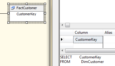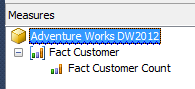 一个[Fact Customer]事实,数据源映射到一个sql查询,这里只查出维度表主键CustomerKey,因此对应的事实度量值就只有一个[Fact Customer Count]顾客人次了。