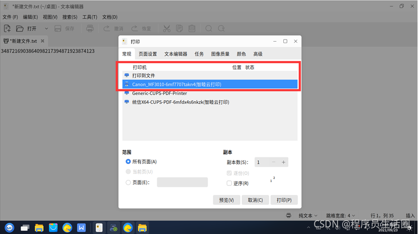 上图为共享打印机的截图。请记住有图上方的云共享码和共享验证码,后续麒麟添加打印机时需要用到。