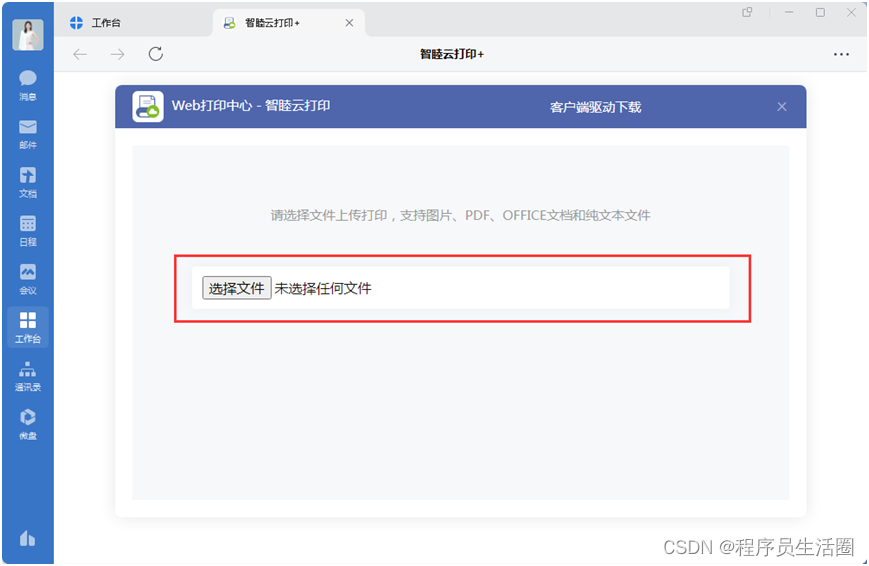 ( 1 ) 飞书桌面端打印操作步骤:进入飞书桌面端打开 【 工作台 】 > 【 智睦云打印 】 > 选择文件打印