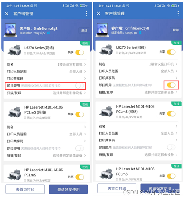 开启后无需授权,任何人扫描打印机二维码即可打印