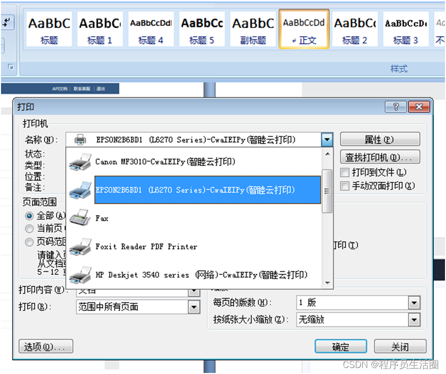 ( 2 ) 直接在办公软件内打印,如打印 word 文件。直接打开 word 文件,选择智睦云打印机打印即可。
