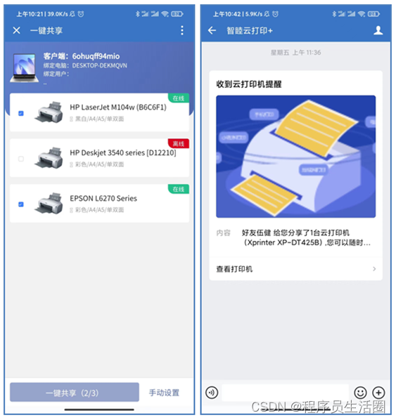 1、一键分享打印机