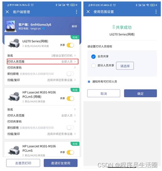 第三步:一键分享打印机及打印机使用设置