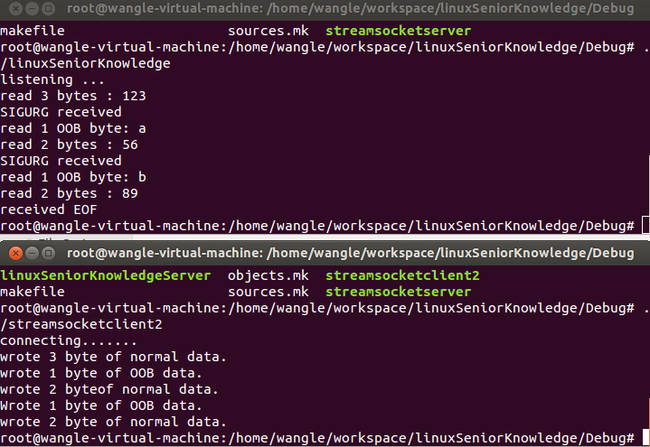 (2) StreamSocketServer2.c:接收带外数据的例子。