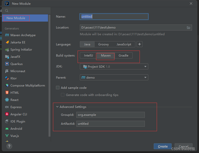 2.选择 new Module 其实与新建maven工程没什么区别