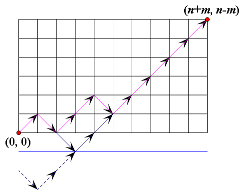 首先总方案数有$\binom{n+m}{n}$,然后有$\binom{n+m}{n+1}$是不合法的= =然后就行辣= =(送个配图= =