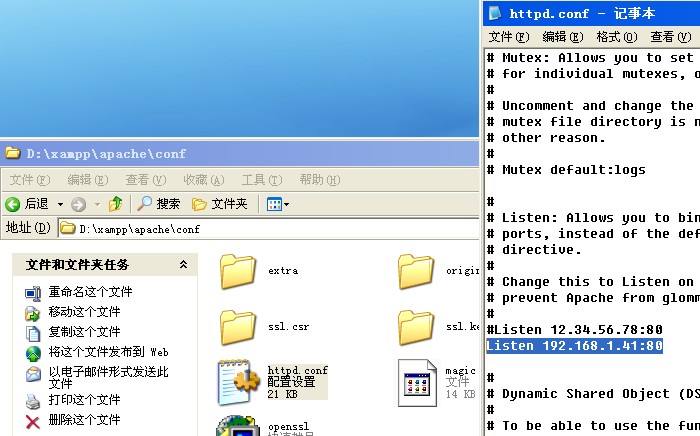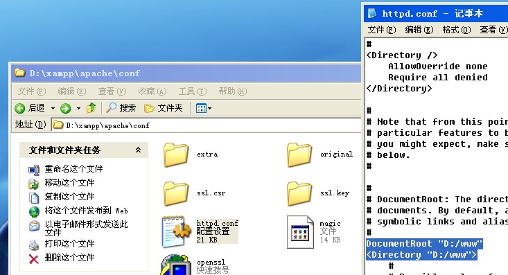 然后编辑\xampp\apache\conf中的httpd.conf文件