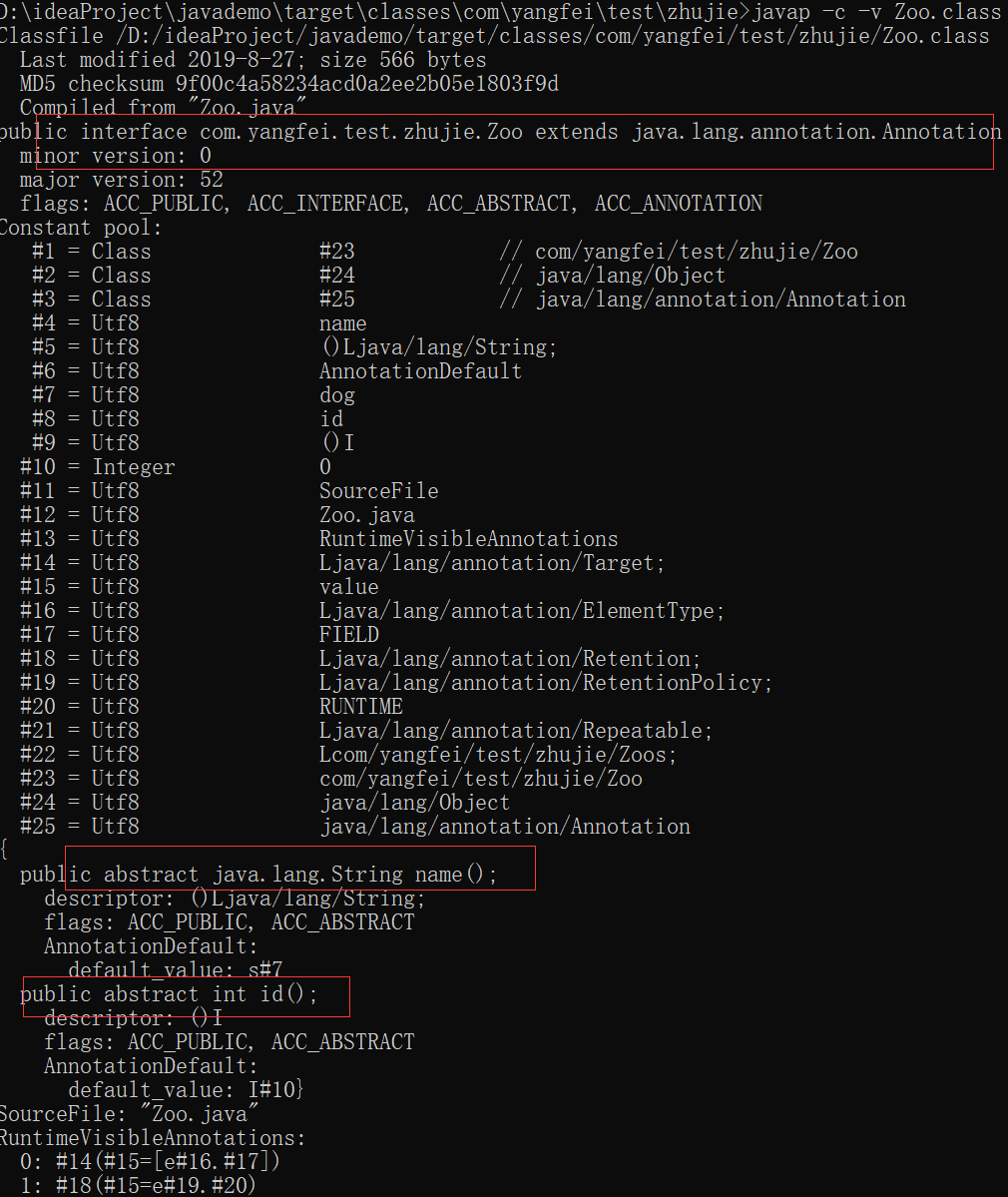 我们对注解生成的注解class使用javap: javap -c -v Zoo.class可以看到