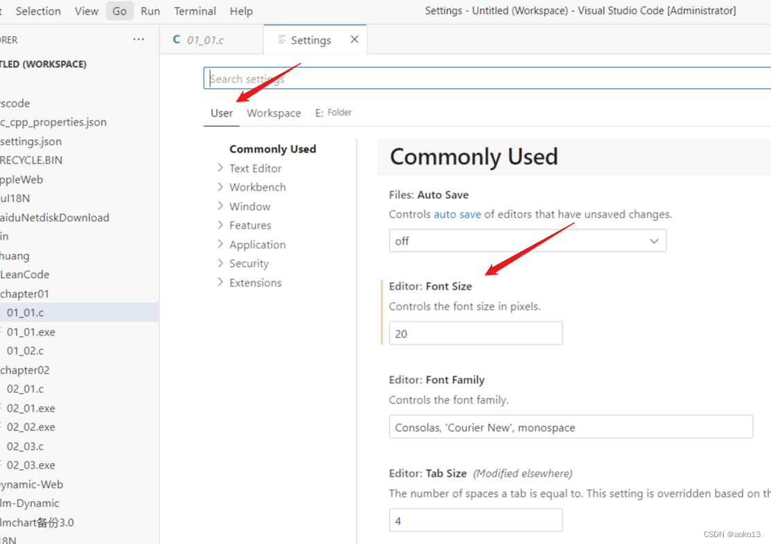 找到user(用户)--设置字体大小