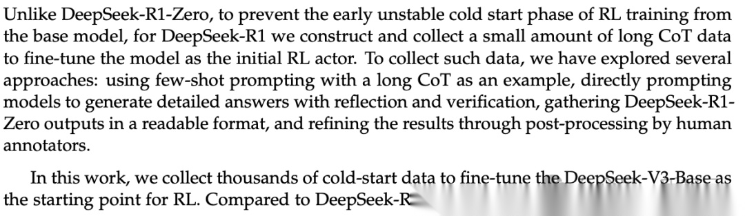 在 DeepSeek-R1 训练中,研究人员直接提示模型生成包含反思和验证的详细答案;收集并整理 DeepSeek-R1-Zero 的输出,使其具有可读性;以及通过人工注释者的后期处理来提高数据质量