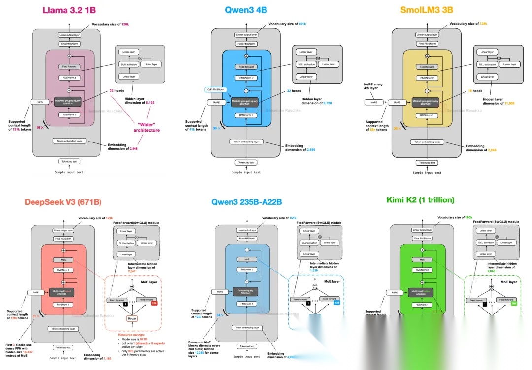 不同大模型的神经网络架构