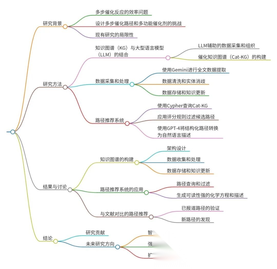 - 1.结合了知识图谱(KG)和大语言模型(LLMs):该方法利用LLMs的数据采集和组织能力,结合KG的结构化知识,自动推荐多步催化反应路径。
