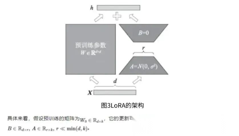 在训练过程中,只需要固定原始模型的参数,然后训练降维矩阵A和升维矩阵B,如图3所示