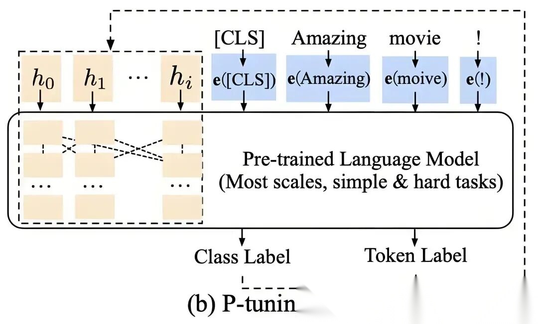 这实际上是一种针对大型语言模型的软提示方法,主要是将大型语言模型的词嵌入层和每个Transformer网络层前都加上新的参数。