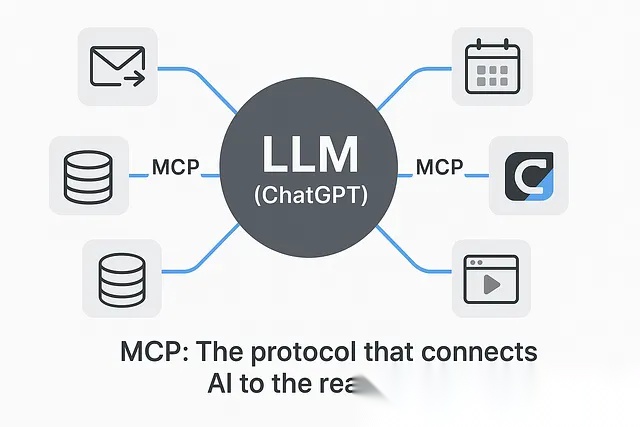 现在想象一下,我们需要为 AI 也建立类似的东西。大型语言模型(LLMs)—— 比如 ChatGPT —— 非常强大,但它们本身并不了解你的业务、你的日程、你的文件或你最喜欢的软件。这就是 MCP 的用武之地。