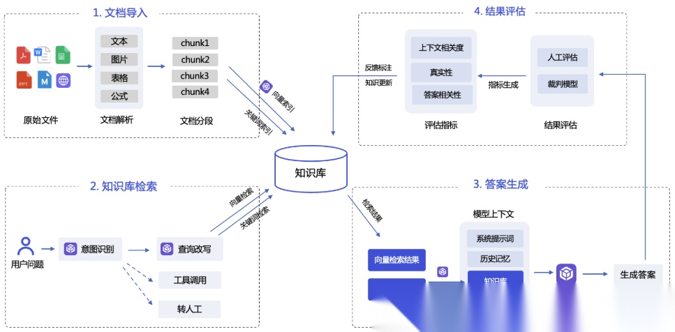 这种生态的核心是数据闭环:用户反馈驱动知识库迭代,评估指标量化优化效果。平台建立的智能体评估中心支持客户自助构建测试集,通过系统裁判模型生成过程指标,实现端到端的持续优化。