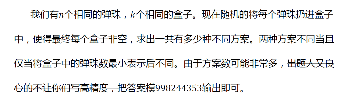 相当于问将$n$拆分成$k$个正整数之和的拆分数