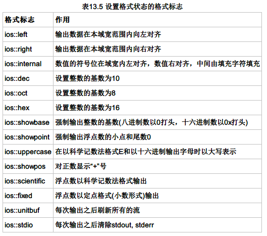 流成员函数setf和控制符setiosflags括号中的参数表示格式状态,它是通过格式标志来指定的。格式标志在类ios中被定义为枚举值。因此在引用这些格式标志时要在前面加上类名ios和域运算符“::”。格式标志见表13.5。
