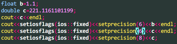 2)设置有效位数setprecision(n),n即为设置位数,例如: