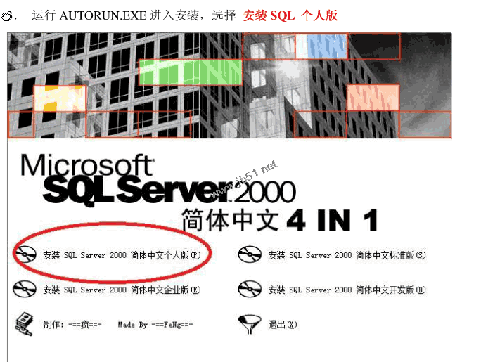 首先,如果以前安装的话,要删除干净。我也找了半天的网络资料。1.把原来SQLServer的安装目录 C:\Program Files\Microsoft SQL Server 删除2.所有SQLServer相关的注册表全部删除,保证系统是没有装过SQLServer的状态注册表打开方式:开始-->运行-->regedit然后找下面目录删除 1).hkey_current_user\software\miocrosoft\MICROSOFT SQL SERVER 文件夹删除 2).hkey_current_user\software\miocrosoft\mssqlserver 文件夹删除 3).HKEY_LOCAL_MACHINE\SOFTWARE\Microsoft\Microsoft SQL Server 文件夹删除总之一句话,把所有SqlServer相关的删除。然后重启机器开始装。