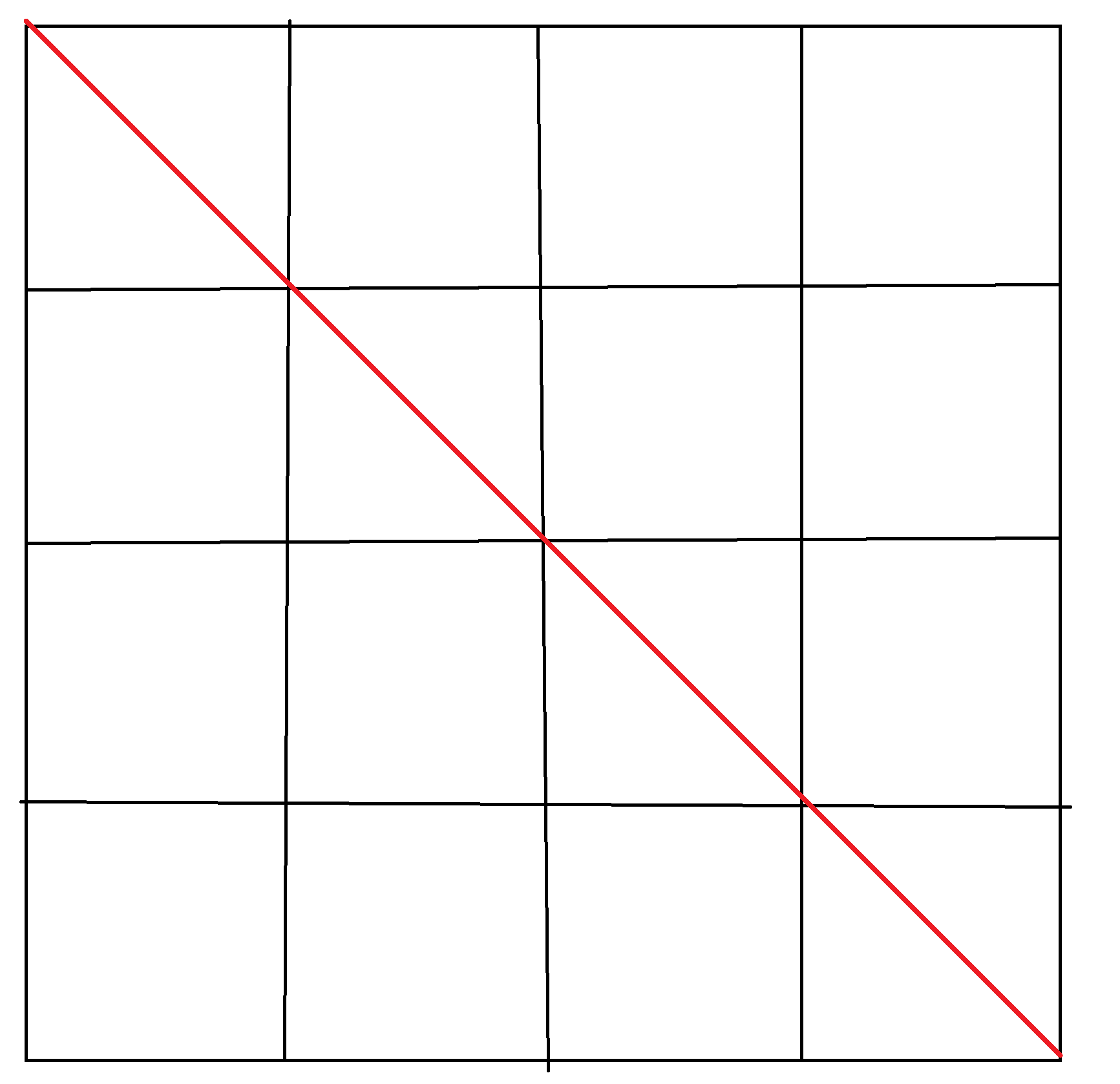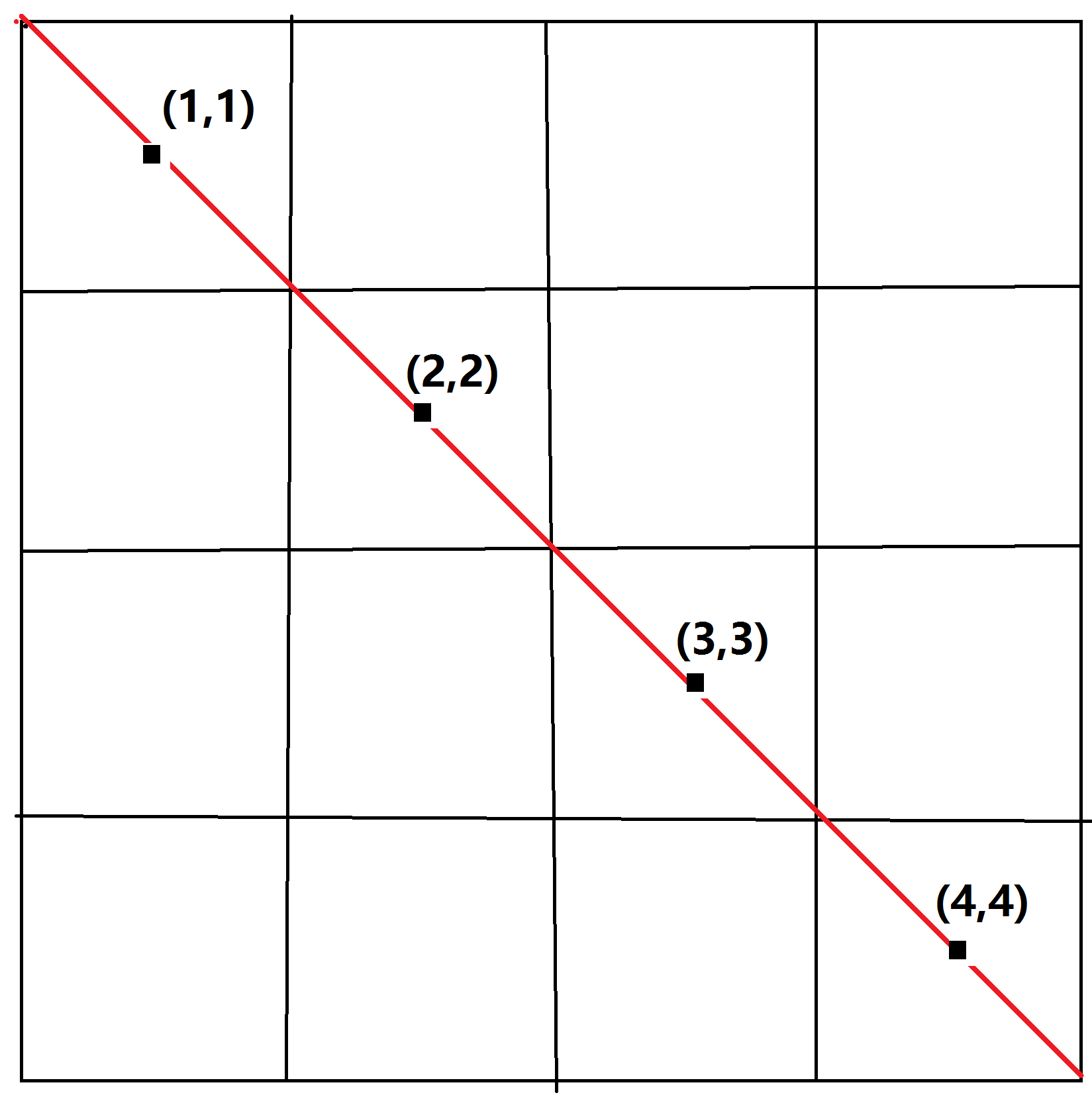 同样的,我们也可以吧主对角线的坐标(x,y)表示为x-y==0