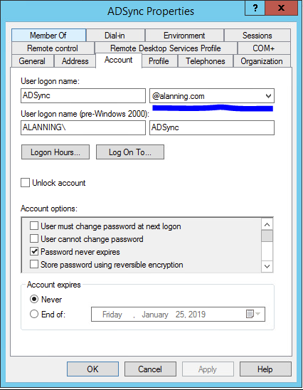 这个看官方文档就有具体操作,前提是有自己的域名。配置完成后,在用DC1中的用户找到你的domain user, 选择Account,改变后缀。