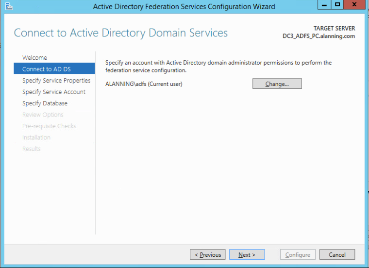 1. Conncet to AD DS - 他会默认当前用户登录,一般不用更改用户,下一步