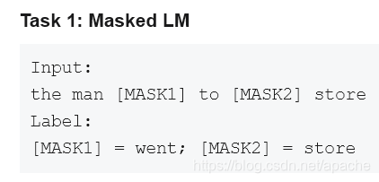 将此过程称为“遮挡的LM”(MLM),尽管在文献中通常将其称为“完形填空任务(Cloze task) ”