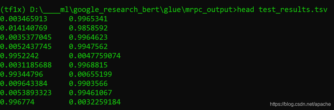 fine-tunes模型写入 ..\glue\mrpc_output, 利用这个模型预测。