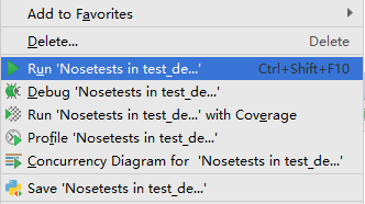 b) 鼠标右键选择Run 'Nosetests in test_demo.py'即可执行测试