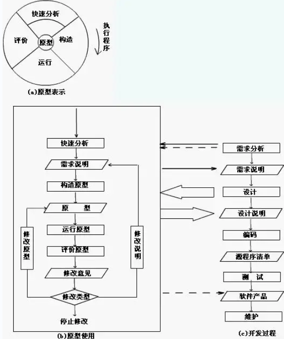 快速原型模型与瀑布模型相反,项目初期根据用户的需求快速构建一个可以运行的系统原型,之后向用户展示,由用户进行审核,提出意见,然后逐步丰富项目需求。当需求真正确定后,才正式进行项目开发。