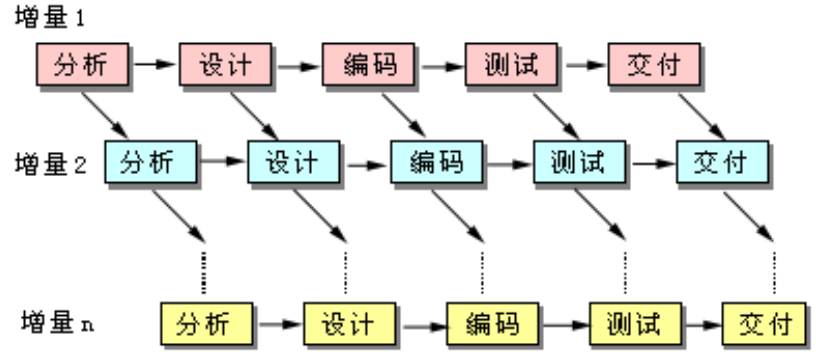 又称为迭代模型或演化模型,它将一个完整的软件拆分成不同的组件,然后逐个组件地开发测试,每完成一个组件就展现给客户,让客户确认这一部件功能和性能是否达到客户需求,最终确定无误,将组件集成到软件体系结构中。整个开发工作被组织为一系列短期、简单的小项目,称为一系列迭代,每一个迭代都需要经过需求分析→软件设计→编码→测试的过程。