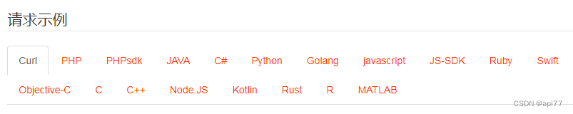 名称 类型 必须 描述 key String 是 调用key(必须以GET方式拼接在URL中) secret String 是 调用密钥 api_name String 是 API接口名称(包括在请求地址中)[item_search,item_get,item_search_shop等] cache String 否 [yes,no]默认yes,将调用缓存的数据,速度比较快 result_type String 否 [json,jsonu,xml,serialize,var_export]返回数据格式,默认为json,jsonu输出的内容中文可以直接阅读 lang String 否 [cn,en,ru]翻译语言,默认cn简体中文 version String 否 API版本