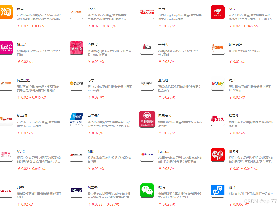 - 商品ID、标题、价格、图片URL:这些基本信息是构建商品数据库和用户界面的基础,能够确保用户看到准确、丰富的商品展示。