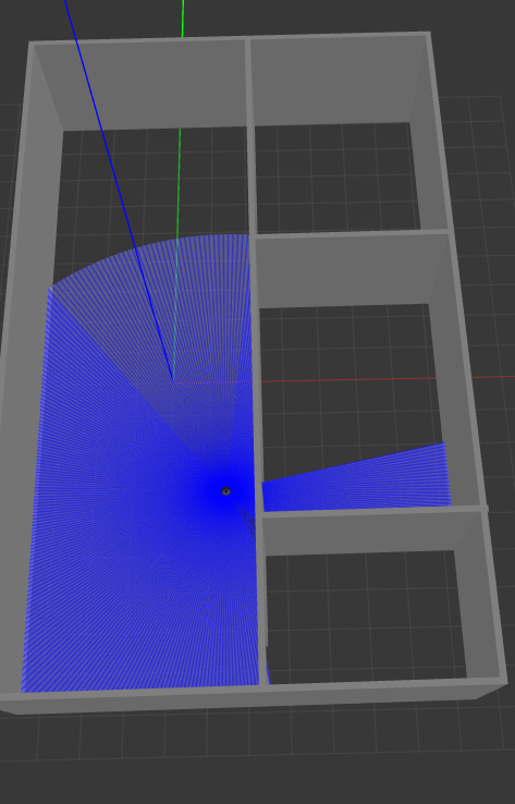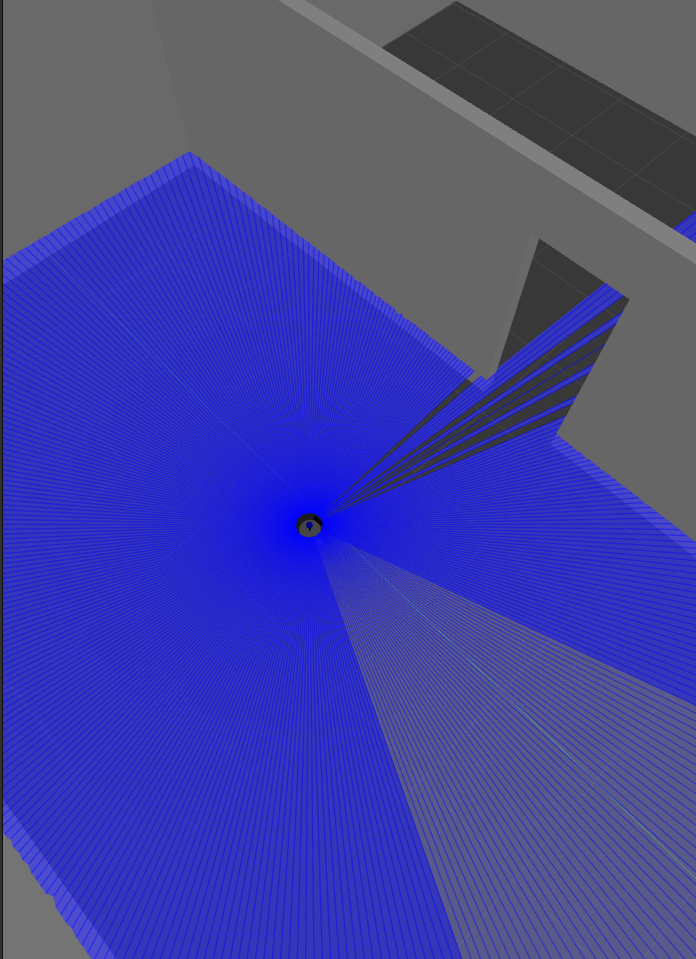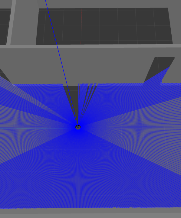 gazebo启动后可以看到机器人顶部的雷达发出了蓝色的线。