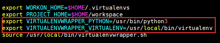 - 使得安装的virtualenvwrapper生效,编辑~/.bashrc文件,内容如下: