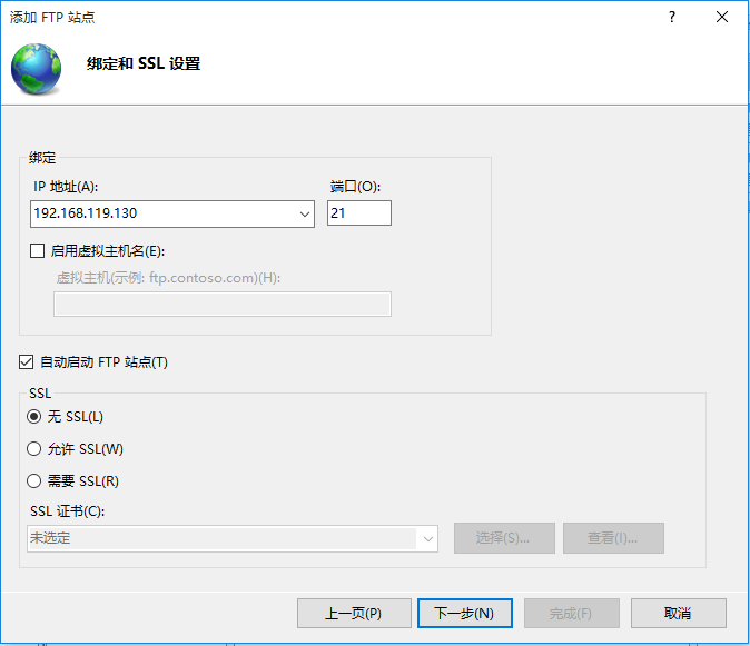 描述下一页为以下界面,这里的身份验证我选择基本,先允许所有用户,后面分享如何设置用户验证,读取和写入顾名思义,为登录你ftp服务器的人是否有读取你文件或上传文件的权限。