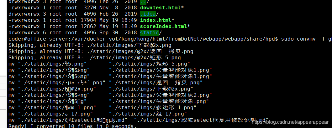 sudo convmv -f gbk -t utf-8 -r --notest ./static/