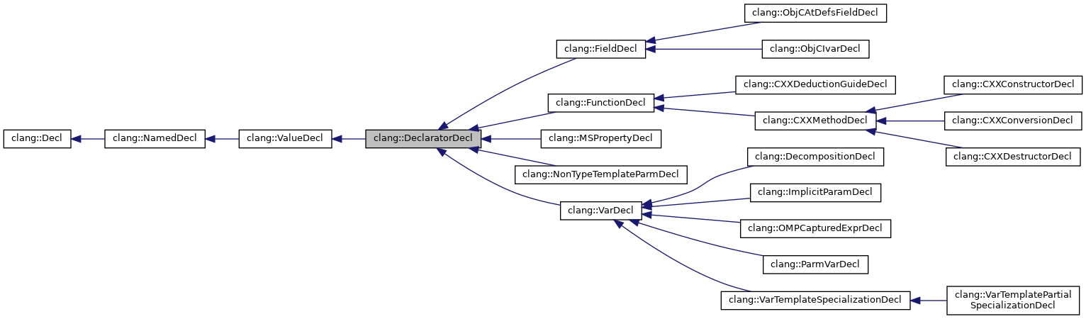 Decl 类包含了所有表征定义的类,自顶向下顺序来说: