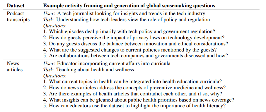 理解型任务需要对 “(人与人、地点与地点、事件与事件之间的)关联关系进行推理,以预测其发展轨迹并有效采取行动”(Klein 等人,2006)。像 GPT(Achiam 等人,2023;Brown 等人,2020)、Llama(Touvron 等人,2023)和 Gemini(Anil 等人,2023)这类大型语言模型,在科学发现(Microsoft,2023)、情报分析(Ranade 与 Joshi,2023)等复杂领域的理解任务中表现出色:若给定理解型查询,且提供包含隐性、互联概念集合的文本,大型语言模型就能生成回答该查询的摘要。