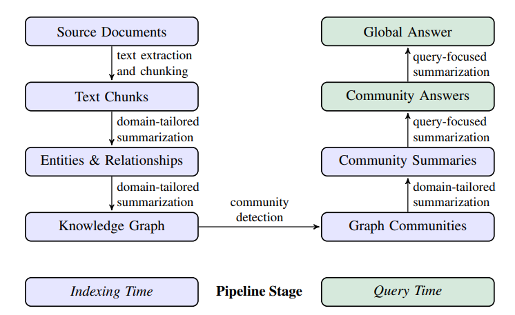 利用检索增强生成(Retrieval-Augmented Generation,RAG)技术从外部知识源检索相关信息,能够让大型语言模型(Large Language Models,LLMs)对私有和 / 或此前未见过的文档集合进行问答。然而,对于针对整个文本语料库的全局性问题(例如 “该数据集中的核心主题是什么?”),RAG 技术会失效。这是因为此类问题本质上属于查询导向型摘要生成(Query-Focused Summarization,QFS)任务,而非明确的检索任务。与此同时,现有的 QFS 方法无法处理典型 RAG 系统所索引的海量文本数据。