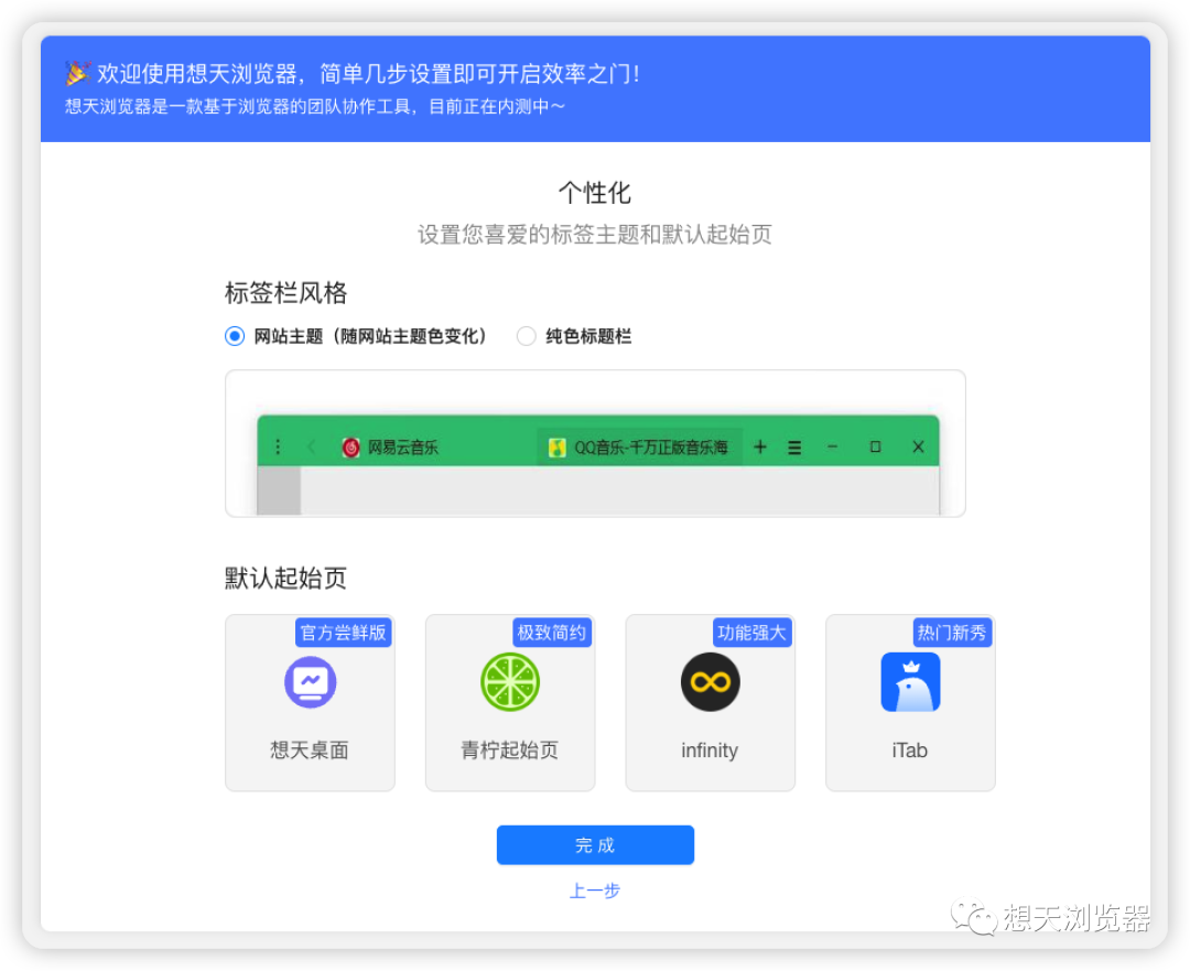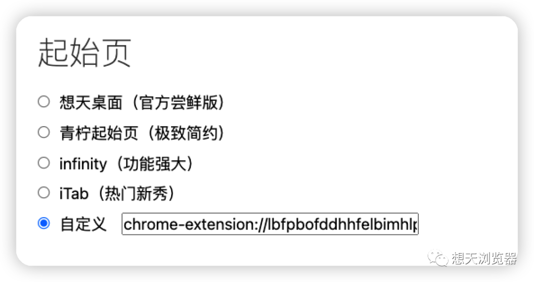 目前支持设置为想天桌面、itab、infinity和青柠起始页
