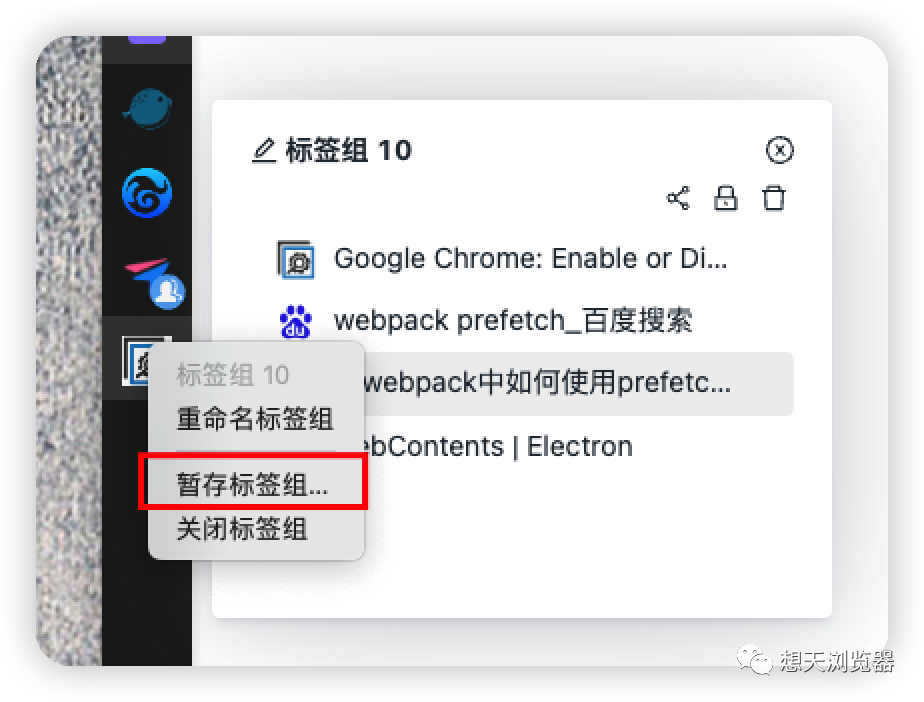 在完成临时性的任务时,或者任务暂时搁置时。通过暂存标签组可以快速在左侧栏清理出一个整洁的位置。